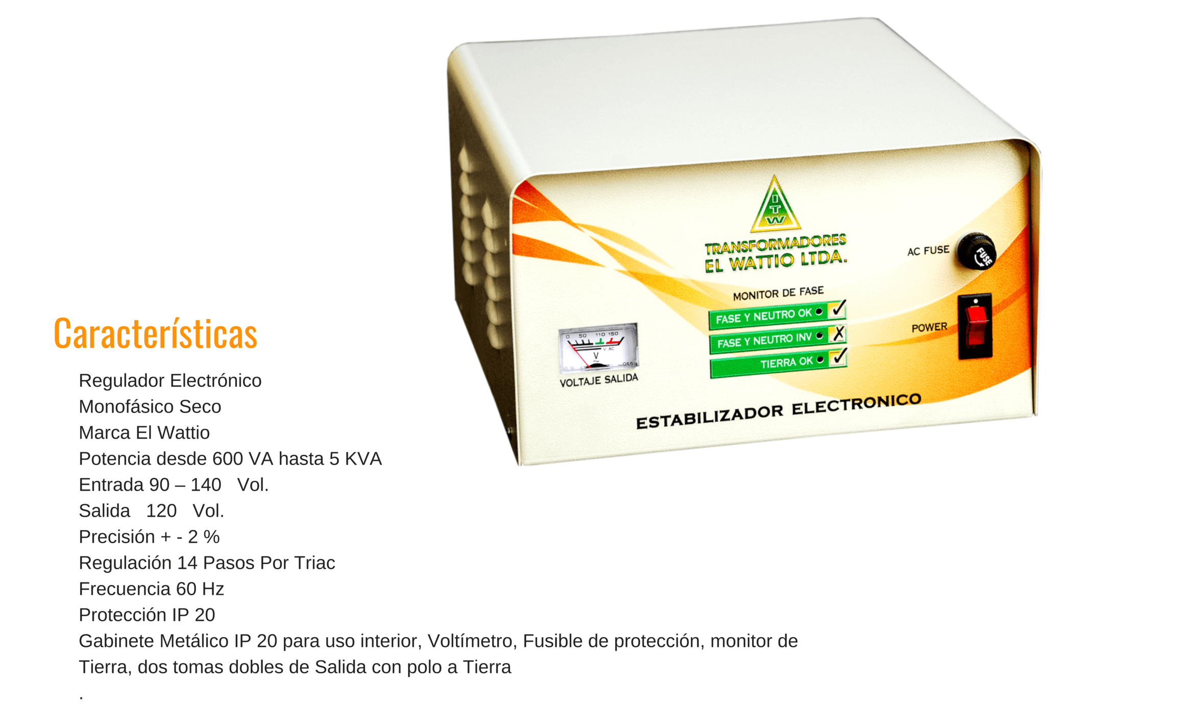 Todo aparato electrónico requiere para su correcto funcionamiento un suministro de energía, estable y libre de picos transcientes, nuestra firma le ofrece 3 tipos de reguladores con diferentes rangos de precisión y respuesta, según su necesidad.